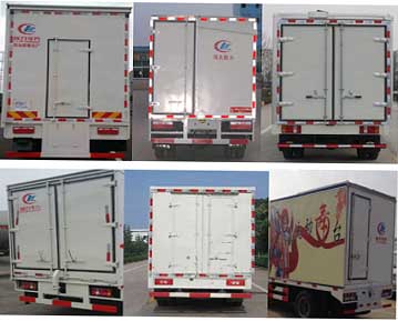 該車是進行舞臺文藝表演的專用車輛。車輛顏色可選;文字噴涂位置可變化。車廂頂棚封閉,并采用衍架結(jié)構(gòu),可升降,車廂兩側(cè)板可選裝液壓展開,與頂棚形成整車舞臺頂棚;活動舞臺板可折疊于車廂內(nèi),通過展開裝置展后與固定舞臺臺面形成整車舞臺臺面; 可根據(jù)用戶要求選裝導流罩,頂板延伸遮陽板;選裝左右LED屏舉升或不舉升,選裝廣告燈箱或者條屏,選裝后部雙開門或者左單開門或者右單開門,后部可選裝液壓升降尾板;底盤大梁部分選裝支撐裝置。防護材料:Q235A碳鋼,連接方式:左右側(cè)面及后下部防護均采用焊接連接,后部防護斷面尺寸(mm):100?0,后部防護離地高度(mm):430。ABS控制器型號及生產(chǎn)企業(yè):CM4XL-4S/4M,廣州科密汽車電子控制技術(shù)股份有限公司;