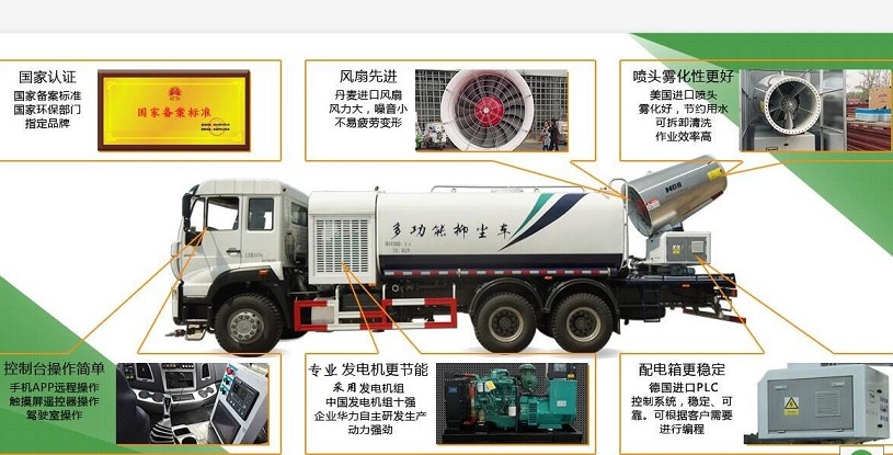 國六解放12方噴霧抑塵車,噴霧抑塵車又稱:多功能抑塵車、降塵車、霧炮車、空氣凈化車。主要是在灑水車的基礎(chǔ)上,增加了遠(yuǎn)距離噴霧抑塵系統(tǒng),對(duì)治理工業(yè)粉塵污染、汽車尾氣、秸稈燃燒等產(chǎn)生在空氣中的細(xì)小懸浮顆粒有顯著的效果,被人們成為“治霾神器”。多功能抑塵車主要作用是噴霧抑塵,同時(shí)具備灑水和道路沖洗功能,還可進(jìn)行工地降塵、環(huán)保除塵、空氣凈化等作業(yè)。風(fēng)送式噴霧大炮可達(dá)30-120米不等,霧炮筒可360°旋轉(zhuǎn),可遙控操作。操控方便,移動(dòng)靈活。