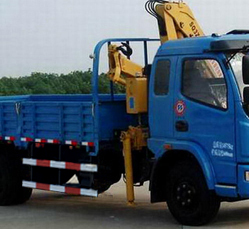 隨車起重運輸車,是一種通過液壓舉升及伸縮系統來實現貨物的升降、回轉、吊運的設備,通常裝配于載貨汽車上。一般由載貨汽車底盤、貨廂、取力器、吊機組成。載貨汽車底盤可選東風、解放、歐曼、斯太爾等各噸位。